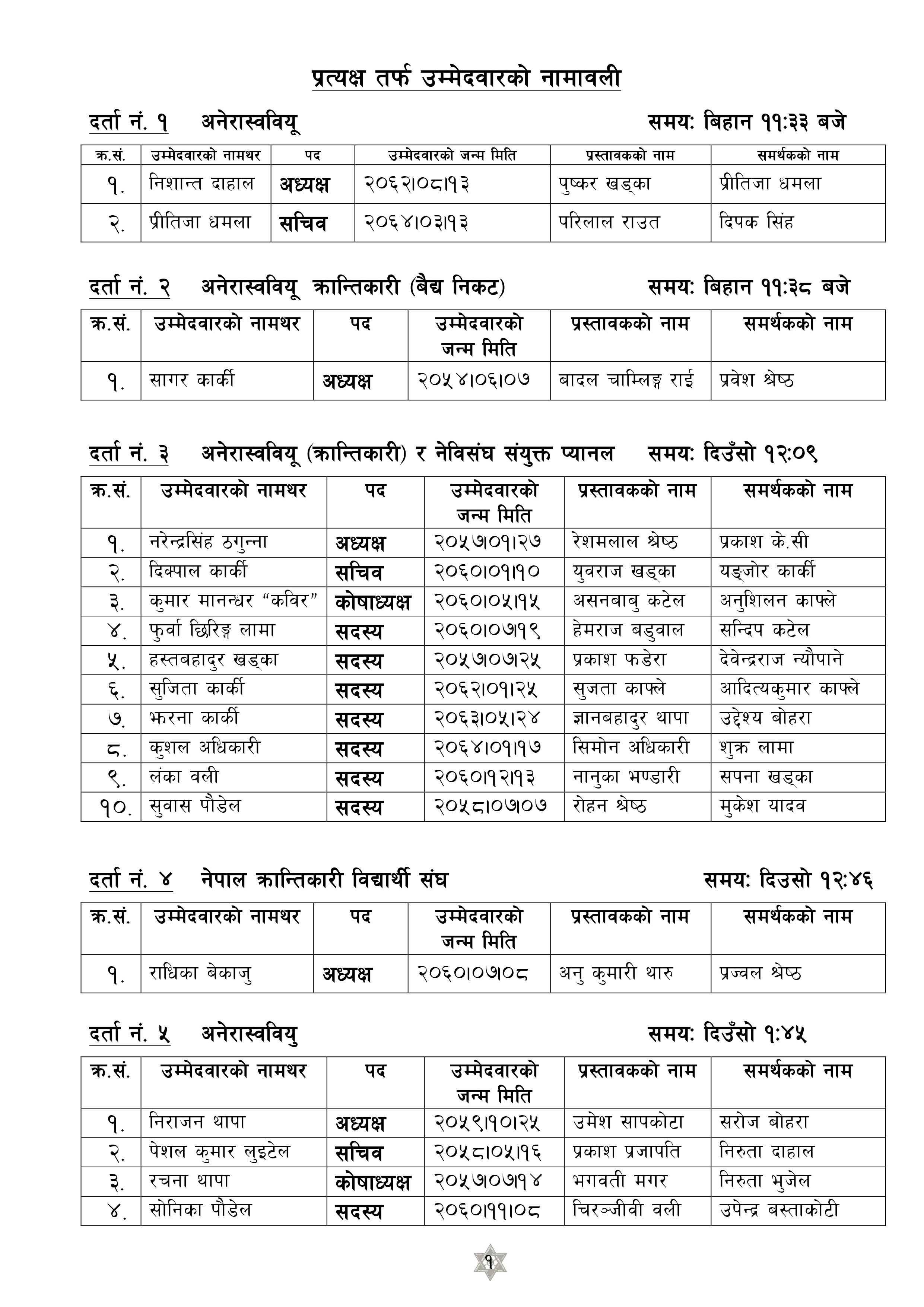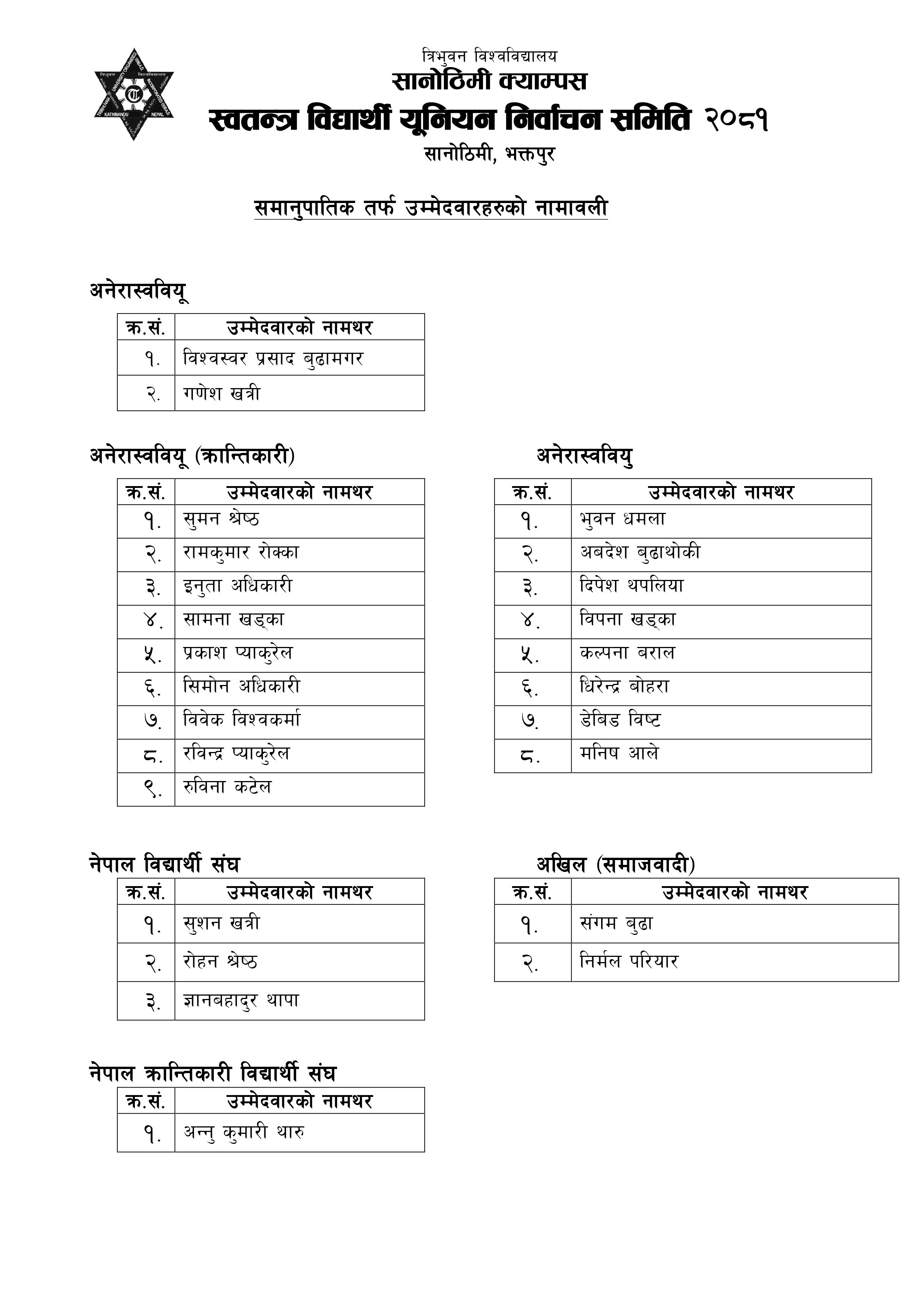 Free Student Union Election 2081 Candidate List